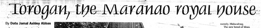 Here is a newspaper article I wrote on the Torogan, the Mranao royal house. I had posted this before in my websites and in my blogs. I stopped maintaining my websites while some of my blogs just vanished for whatever reasons.