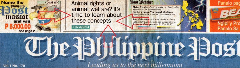 The fight between animal rights organizations and animal welfare groups are getting nastier in the US, esp. with impending laws on animal rights and welfare. In the Philippines, the people and the mass media don’t seem to know the difference. At any rate, it seems like my article still holds true and relevant, even though it has been more than twenty years since I wrote it. Here is is: