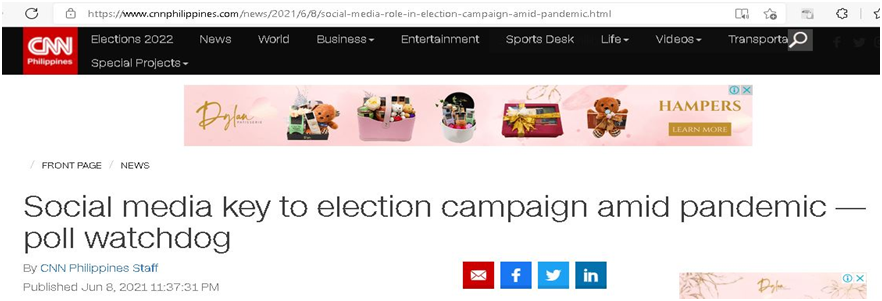In a CNN Philippines news report (June 8, 2021) The Parish Pastoral Council for Responsible Voting (PPCRV) reminded Filipinos try to discern what is Fake News and Misinformation in Social Media as “it remains a key player in the upcoming 2022 elections due to the COVID-19 pandemic.”