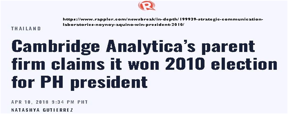 In a Sept, 2019 Rappler article, whistle blower Christopher Wylie said that the Philippine was its “petri dish’. In an interview with Maria Ressa, Wylie said: