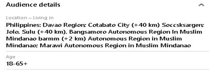 FB said the whole Mindanao is too big for target audience, so I just limited it to: