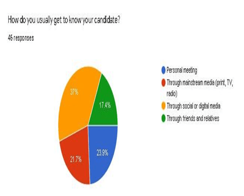 3. Some 37% of the respondents say that they usually get to know their candidate(s) through Social Media. 24% chose Personal Meeting while 22% say through mainstream media.