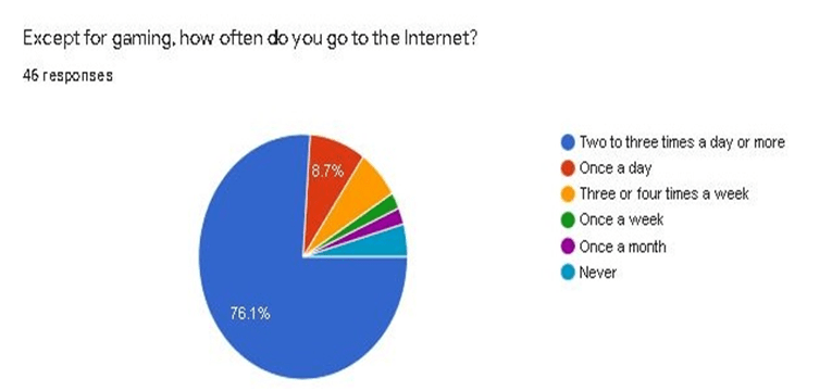 5. Other than for gaming, more than three-quarters (76%) of the respondents say they go to the Internet two to three times a day, with 8.7% going everyday. This proves the statistics that Filipinos spend a lot of time in the Internet.
