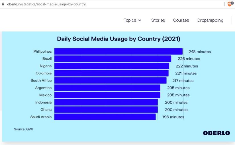The Philippines has consistently topped the charts in Time Spent on Social Media: