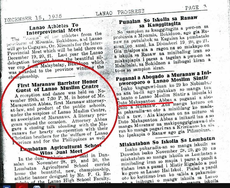 The demise of Sultan Ibra was a big blow to the Marawi clans. In the 1934 elections for the Constitutional Convention, Macapanton’s clansmen could not decide on a candidate. Macapanton was still pursuing his law studies in Manila.
